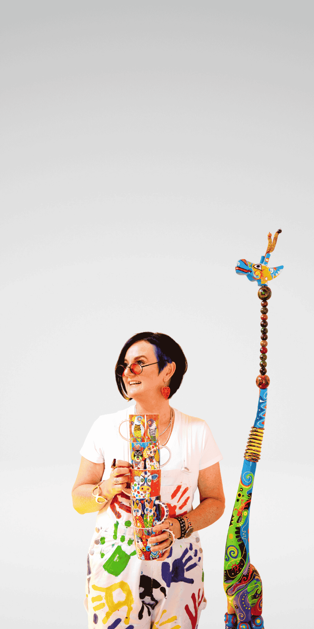 Each original painting is infused with bold imagination, love of colour, and a zest for life that shines through.