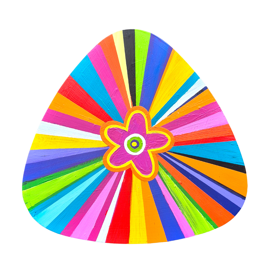 In the 1960s, striped patterns were typically described using terms that reflected their visual style, scale, or cultural influence. The term Candy Stripe traditionally refers to bright, high-contrast stripes—most commonly red and white—evoking the playful imagery of a candy cane. Donna’s interpretation of the Candy Stripe reimagines this classic motif by incorporating the full spectrum of the rainbow, resulting in a design that is cheerful, bold, and visually striking in its simplicity.